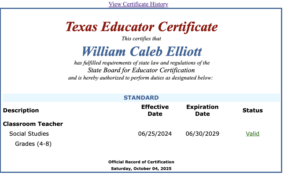 According to Elliott’s resume, he graduated from the University of North Texas in 2022 with a Bachelor’s degree in Integrative Studies. During 2021 and 2022, he worked in Celina ISD as a substitute teacher and a maintenance worker.