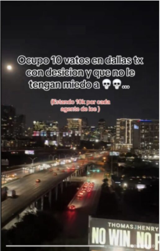 Prosecutors said the post, written in Spanish, stated, “I need 10 dudes in Dallas with determination (guts) who aren’t afraid to [two skull emojis],” followed by, “10K for each ICE agent.” Federal officials allege the skull emojis were used to represent the word “die.”