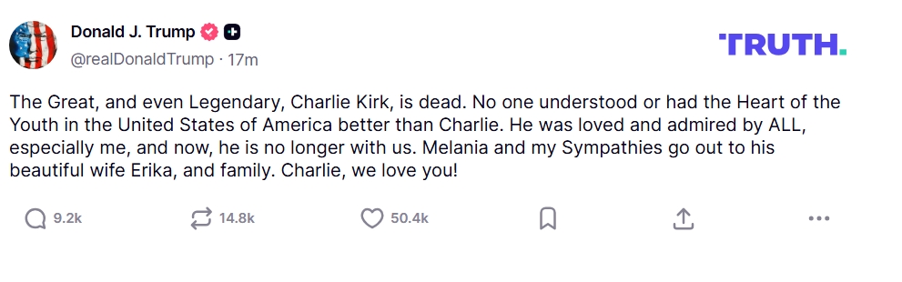September 10, 2025, 3:40 p.m., President Donald Trump posted to Truth Social: