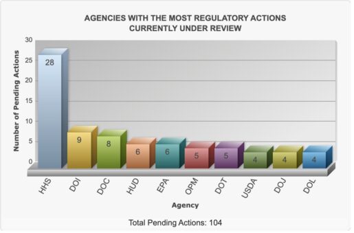 HHS currently has 28 regulations under review, far outpacing all other Cabinet departments. The next most active agencies, the Interior Department and the Commerce Department, have just nine and eight rules under review, respectively.