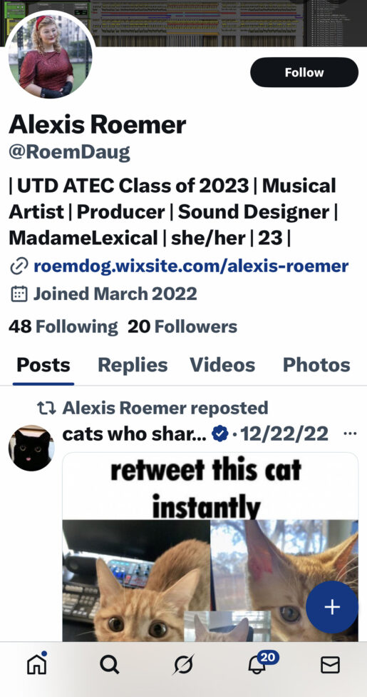 Madame Lexical has been identified as Alexis Roemer, a 23-year-old graduate of the University of Texas at Dallas who describes herself online as a musical artist, producer, and sound designer. Roemer’s social media includes TikTok videos with firearm simulation effects, one showing a virtual Sig P320 handgun and another overlaying a target graphic labeled “Texan leftists.”