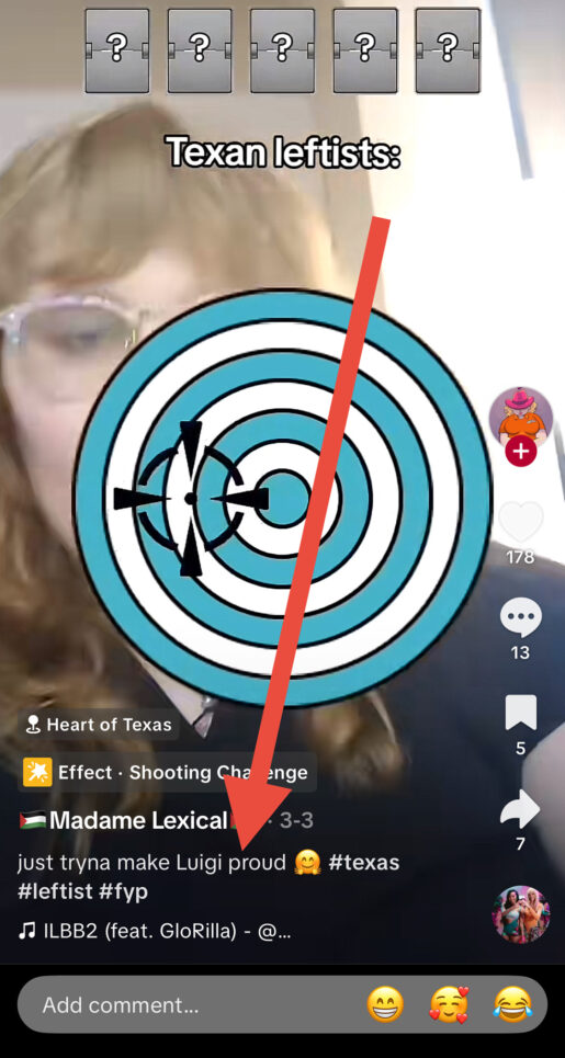 Another TikTok video by Madame Lexical shows a target graphic with the caption “Texan leftists.” (Image via TikTok screenshot)