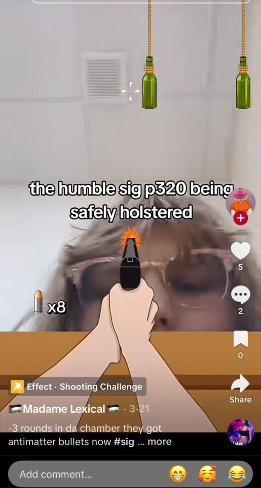 A TikTok video posted by Madame Lexical depicts a simulated Sig P320 handgun. (Image via TikTok screenshot)